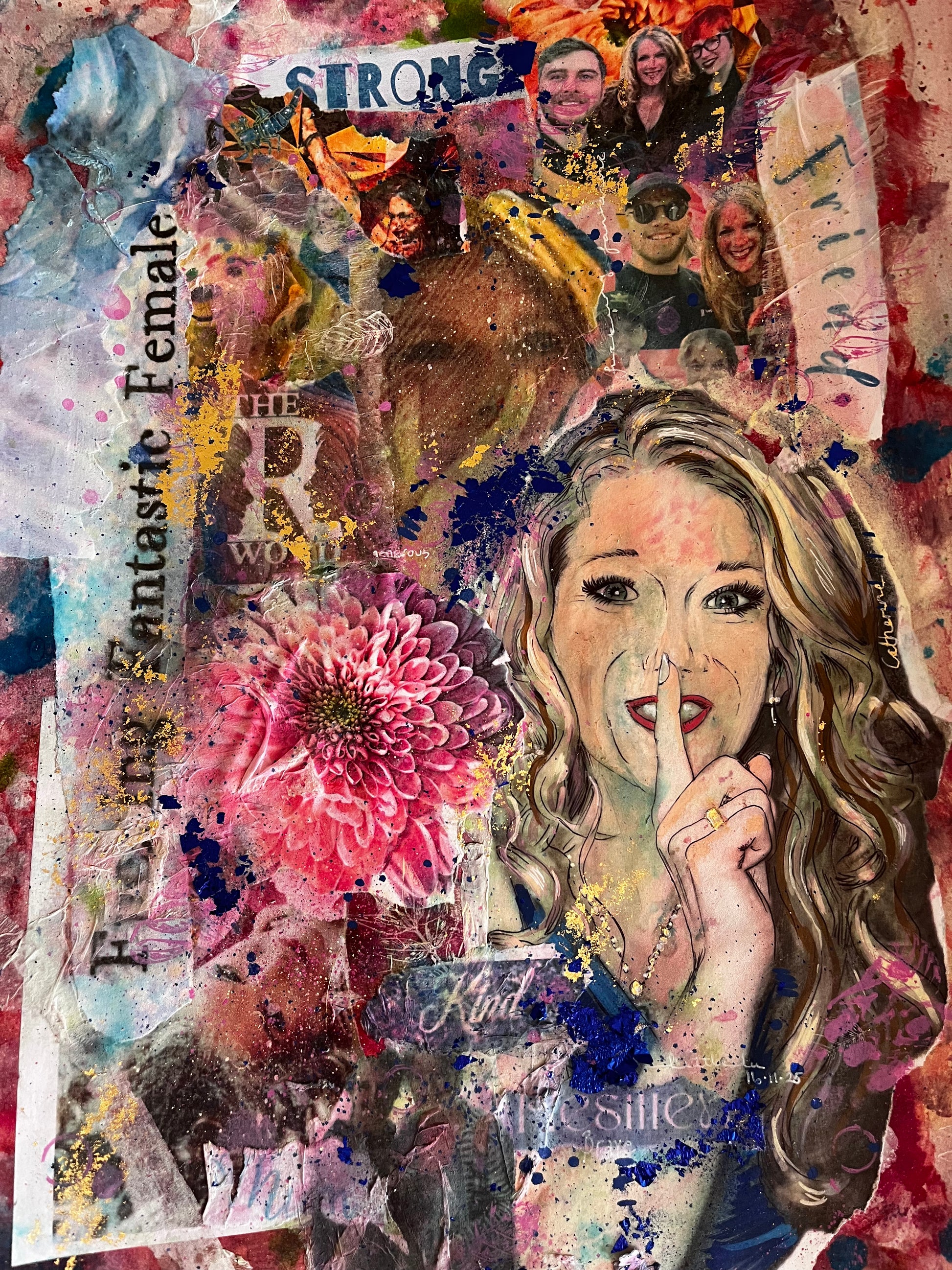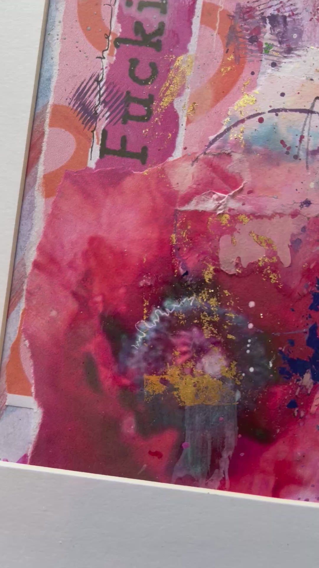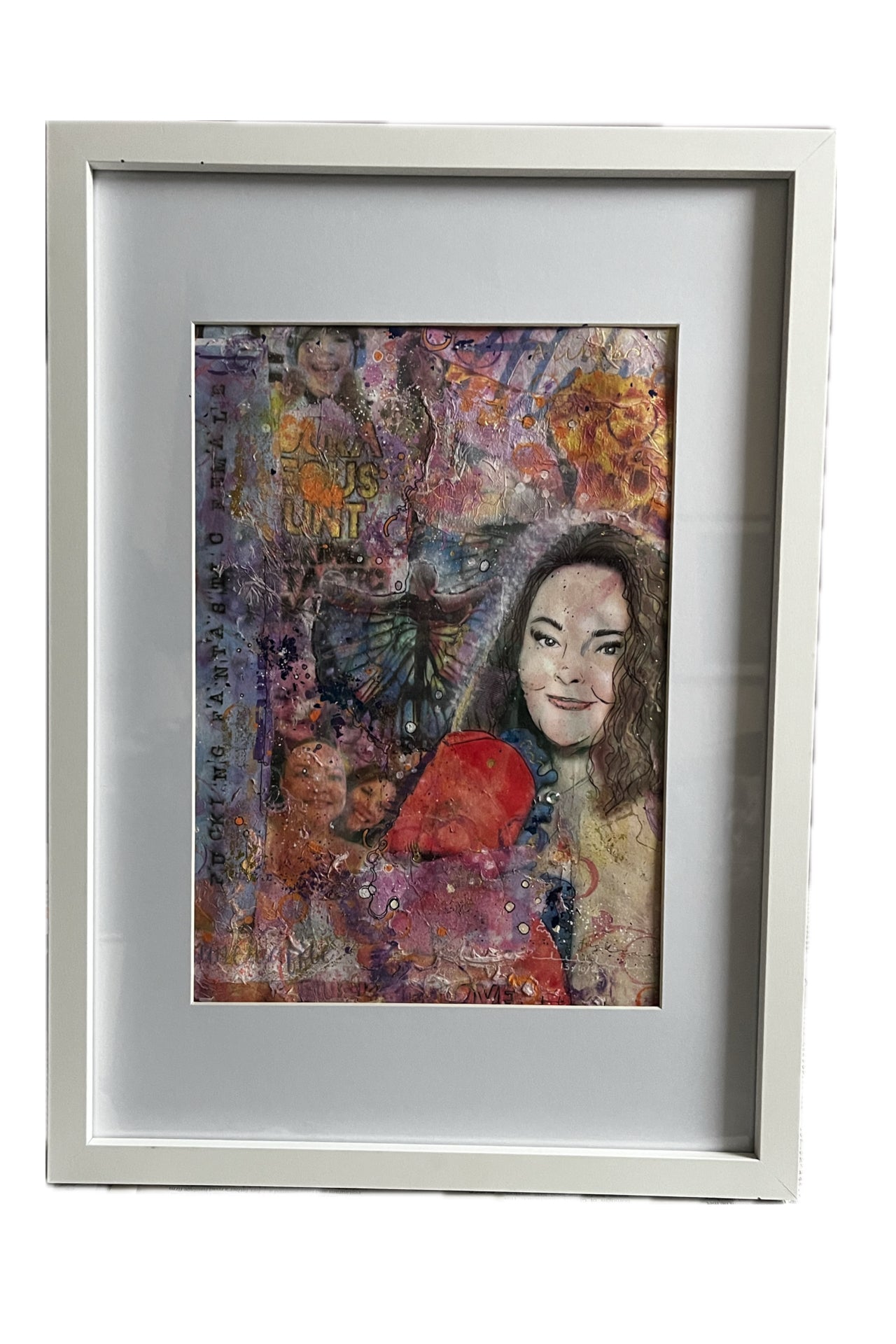 Many layers of paint, ink, collage, fabric make up this highly personalised and unique artwork.